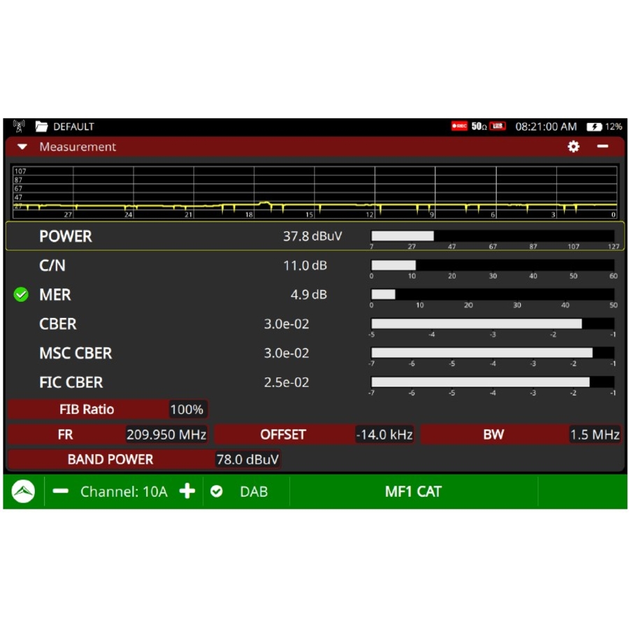 SCHEDA OPZIONALE PER TV EXPLORER NG L'opzione DAB+ include alcuni strumenti esclusivi come la registrazione ETI (Ensemble Transport Interface). È inoltre in grado di decodificare e visualizzare immagini (Slideshow) inviate da alcuni broadcaster per integrare i servizi audio. Sono inoltre disponibili su DAB/DAB+ alcuni strumenti standard come l'analisi degli Echi, il diagramma di Costellazione e il MER per portante. Dettaglio tecnico delle funzioni Registrazione ETI (Ensemble Transport Interface): permette di registrare l'intero flusso dati del multiplex (l'equivalente del Transport Stream per il DVB) per una successiva analisi dettagliata. Slideshow (SLS): visualizza sullo schermo dello strumento le immagini trasmesse dalle emittenti (come copertine di album, loghi o informazioni sul traffico). Analisi degli Echi: fondamentale per le reti SFN (Single Frequency Network), permette di visualizzare i segnali ritardati che potrebbero causare interferenze. Costellazione: mostra graficamente la qualità della modulazione DQPSK utilizzata nel sistema DAB. MER per portante: fornisce una misura precisa del Modulation Error Ratio per ogni singola sottoportante del segnale, utile per identificare interferenze selettive in frequenza