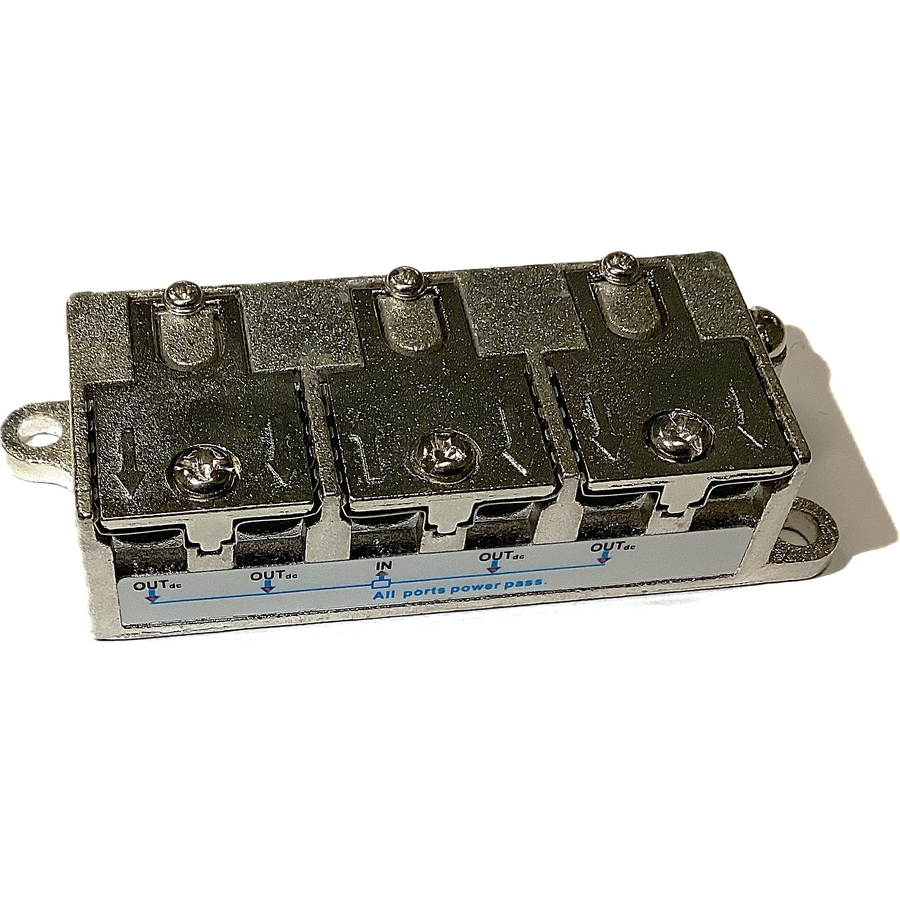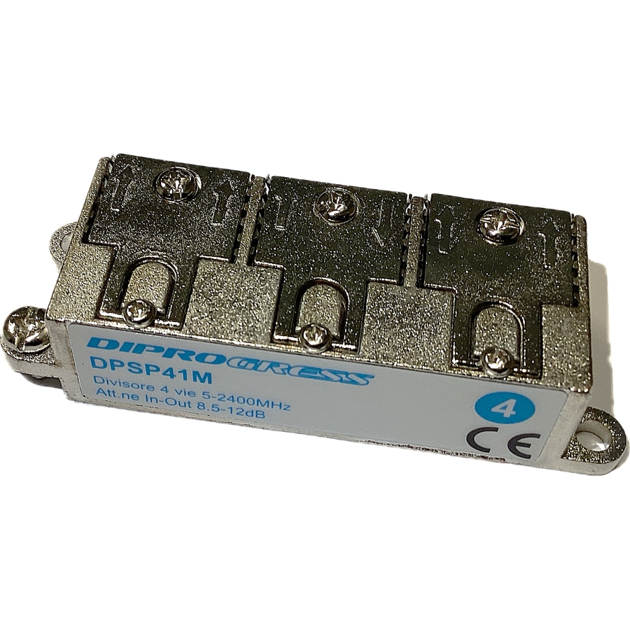 Partitore in pressofusione TV+SAT con morsetti a vite 4 Uscite,TV+SAT, banda passante 5-2300MHz Realizzato in pressofusione completamente schermata Minimo ingombro,con basse perdite e ottimo disaccoppiamento passaggio DC su tutte le uscite Adatto a cavo coassiale con diametro massimo 7mm