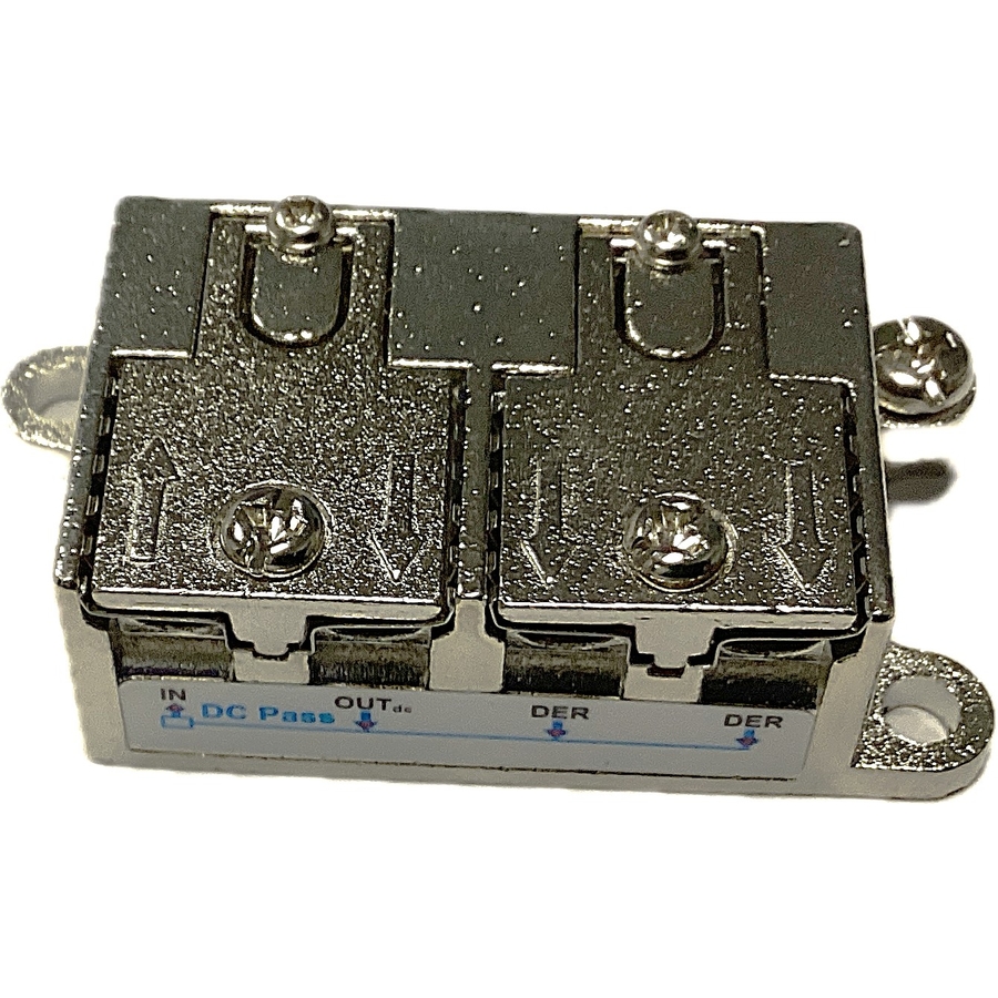 Derivatore in pressofusione TV+SAT con morsetti a vite 2 Uscite Derivate,TV+SAT, banda passante 5-2300MHz, attenuazione in derivazione 16 dB 1 Uscita Passante Realizzato in pressofusione completamente schermata Minimo ingombro,con basse perdite e ottimo disaccoppiamento IN/DER Adatto a cavo coassiale con diametro massimo 7mm