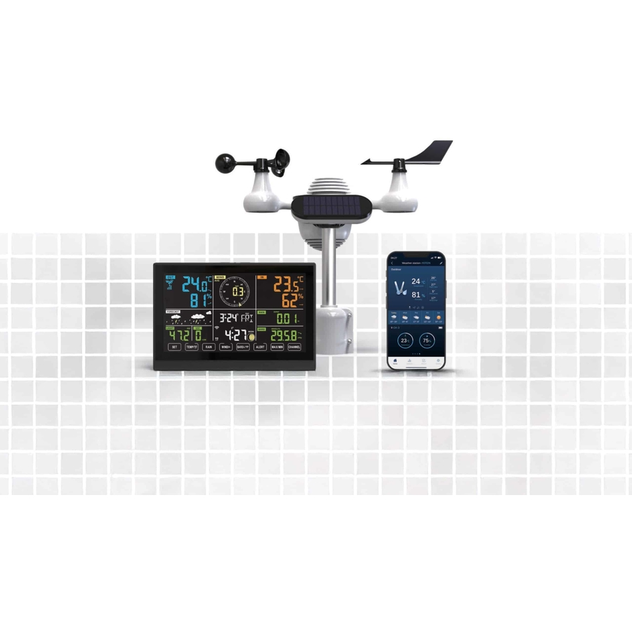 La stazione meteorologica DiProgress Mystral è una soluzione avanzata per il monitoraggio ambientale, ideale per chi desidera una misurazione completa e in tempo reale di tutti i principali parametri atmosferici. Dotata di un ampio display a colori touchscreen da 7,5 pollici, connessione Wi-Fi integrata e sensore esterno multifunzione, è pensata per offrire precisione, connettività e controllo totale, anche da remoto tramite app. Caratteristiche principali Il grande display LED a colori da 7,5” con touchscreen e retroilluminazione regolabile su tre livelli assicura una lettura chiara di tutti i dati, in qualsiasi condizione di luce. Compatibile con la piattaforma Tuya IoT, funziona perfettamente tramite Wi-Fi con le app Tuya Smart e Smart Life, consentendo la gestione dei dati anche da smartphone. La sincronizzazione dell’orario via Internet garantisce data e ora sempre precisi, con visualizzazione del calendario, giorno della settimana e fasi lunari. Include una sveglia integrata con funzione snooze, utile per l’utilizzo quotidiano. Fornisce previsioni meteo dettagliate con icone intuitive: soleggiato, parzialmente nuvoloso, nuvoloso, pioggia, temporale e neve. Misura in tempo reale temperatura e umidità, sia interne che esterne (in °C o °F), con indicazione della tendenza climatica e del livello di comfort interno su tre livelli. Legge la pressione barometrica, sia in modalità assoluta che relativa, con visualizzazione della tendenza barometrica. Visualizza l’intensità luminosa e l’indice UV (UVI), fondamentali per valutare l’esposizione solare e proteggere la salute. Il pluviometro integrato misura con precisione la quantità di pioggia su base oraria, giornaliera, settimanale, mensile e totale, visualizzando anche il tasso di precipitazione nell’ultima ora. L’anemometro e anemoscopio esterni rilevano la velocità media del vento, le raffiche e la direzione del vento, offrendo un quadro completo delle condizioni atmosferiche. Sono visualizzati diversi indici meteo avanzati, tra cui temperatura percepita, wind chill, indice di calore e punto di rugiada, per un’analisi accurata del microclima. Registra ogni giorno i valori massimi e minimi di tutti i parametri monitorati, fornendo una cronologia utile all’utente. Consente l’impostazione di allarmi personalizzati per limiti massimi e minimi (Hi/Lo), con indicatore lampeggiante e messaggio di avviso sul display al superamento delle soglie. Il giorno della settimana è selezionabile in 8 lingue: italiano, tedesco, danese, inglese, spagnolo, francese, olandese e russo. I 9 pulsanti touch garantiscono un’interazione rapida e intuitiva con tutte le funzionalità. Può essere installata a parete o utilizzata da tavolo, grazie al design versatile e compatto. Alimentazione principale tramite adattatore AC-DC (DC 5V/1A) incluso, con backup a 3 batterie AAA (non incluse) per il funzionamento in caso di interruzioni di corrente. È incluso un trasmettitore esterno wireless modello R53, che incorpora termo-igrometro, anemometro, anemoscopio, pluviometro e sensore UV/luminosità, alimentato da 3 batterie AA (non incluse). Specifiche Tecniche Display a colori da 7,5? con retroilluminazione LED Compatibile con Tuya IoT, funziona con le app Tuya Smart e Smart Life tramite Wi-Fi. Connessione Wi-Fi con sincronizzazione dell’ora via Internet. Visualizzazione di ora, calendario, giorno della settimana, fasi lunari. Sveglia con funzione snooze. Previsioni meteo (Soleggiato, parzialmente nuvoloso, nuvoloso, pioggia, temporale, nevoso). Lettura della temperatura interna ed esterna (?/?) e dell’umidità con tendenza. Indicazione del livello di comfort interno su 3 livelli. Pressione barometrica in lettura assoluta o relativa e tendenza della pressione. Visualizzazione dell’intensità luminosa e dell’indice UV (UVI). Pioggia oraria, giornaliera, settimanale, mensile, totale e tasso di precipitazione nell’ultima ora. Visualizzazione della velocità media del vento, raffiche e direzione del vento. Visualizzazione della pressione barometrica assoluta e relativa con tendenza. Visualizzazione degli indici meteo: Temperatura percepita, Wind Chill, Indice di calore, Punto di rugiada. Registrazione giornaliera di valori massimi/minimi. Impostazione di allarmi per valori alti/bassi (Hi/Lo). Indicatore lampeggiante con avviso sul display in caso di superamento dei limiti. 8 lingue disponibili per il giorno della settimana (DE/DK/EN/ES/FR/IT/NL/RU). 9 pulsanti touch funzionali. Retroilluminazione con 3 livelli di luminosità. Indicazione di batteria scarica. Utilizzabile a parete o da tavolo. Funziona con 3 batterie AAA di backup (non incluse). 1 trasmettitore wireless (modello R53) incluso (richiede 3 batterie AA, non incluse). Adattatore AC-DC: DC 5V/1A, incluso. Dimensioni Stazione meteo (ricevitore): 191,6 x 127 x 28,8 mm Dimensioni Trasmettitore stazione meteo: 408 x 350 x 367 mm